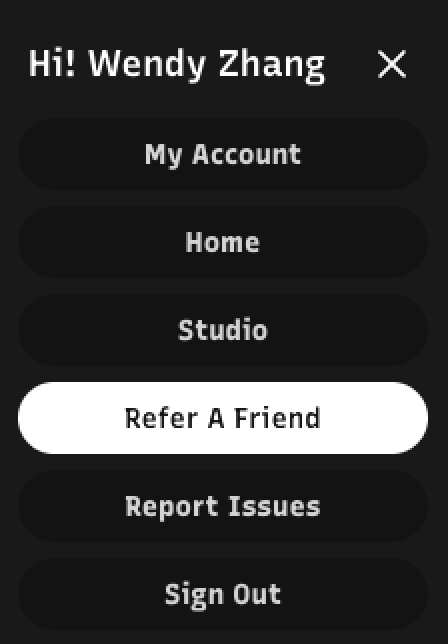 💡 Tip: You can also open the main menu and select “Refer a Friend”—a popup will appear with your referral link and instructions.