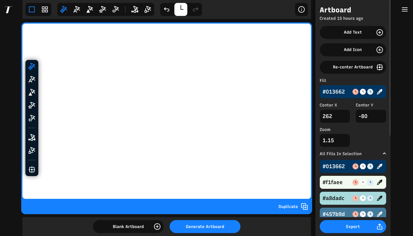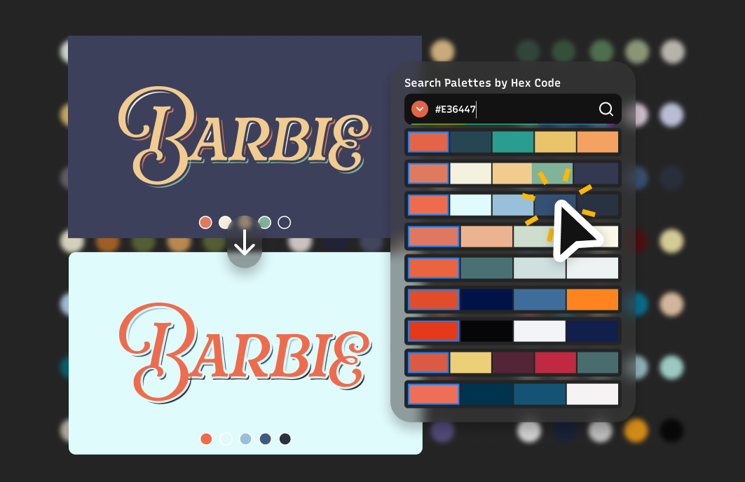 Search color palettes by entering a hex code. The tool matches the exact color or, if not enough results are found, matches similar hues using fuzzy search. Apply a selected palette to your artboard with a single click.